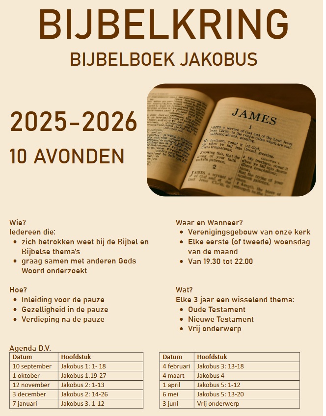 In 2025 / 2026 behandelen we samen het Bijbelboek Jakobus.